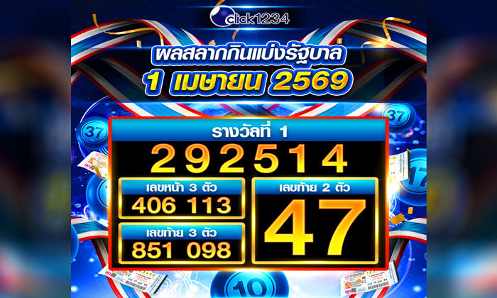 ผลสลากกินแบ่งรัฐบาลประจำงวดวันที่ 1/4/2569